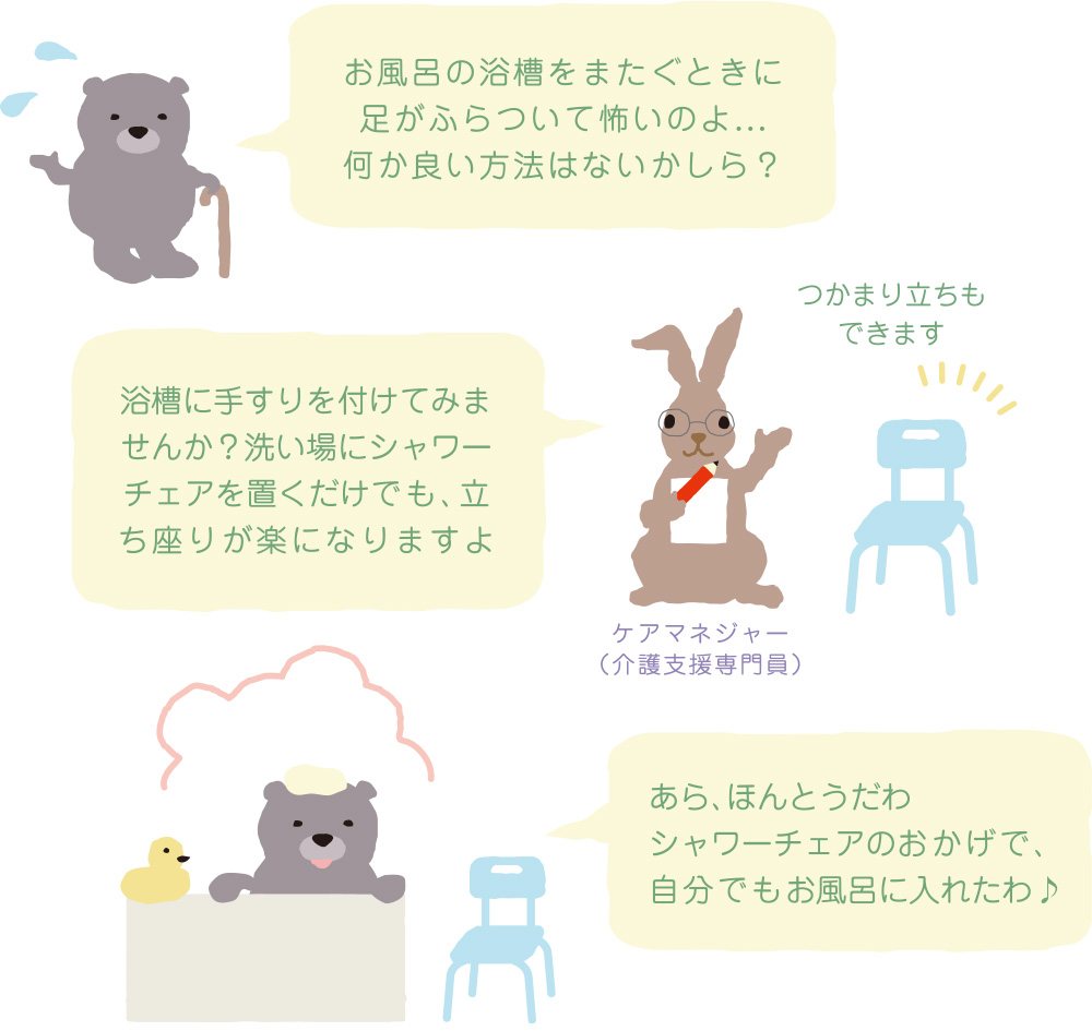 「こうしたら、もっと暮らしやすいかも」という悩みや困りごとを、一緒に考えます。